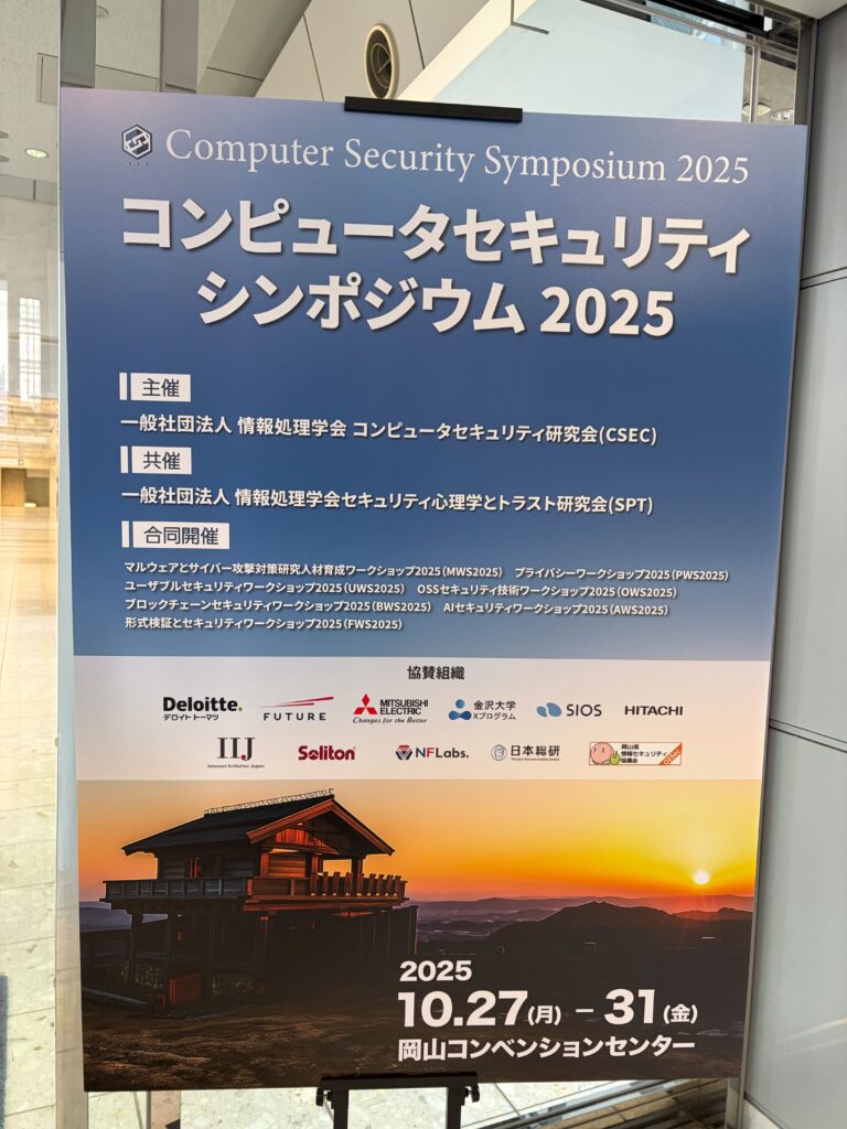2025/10/27 - 2025/10/31の期間,岡山コンベンションセンターで開催された,コンピュータセキュリティシンポジウム2025(CSS2025)に研究発表するため参加してきたので綴っていきたいと思います.