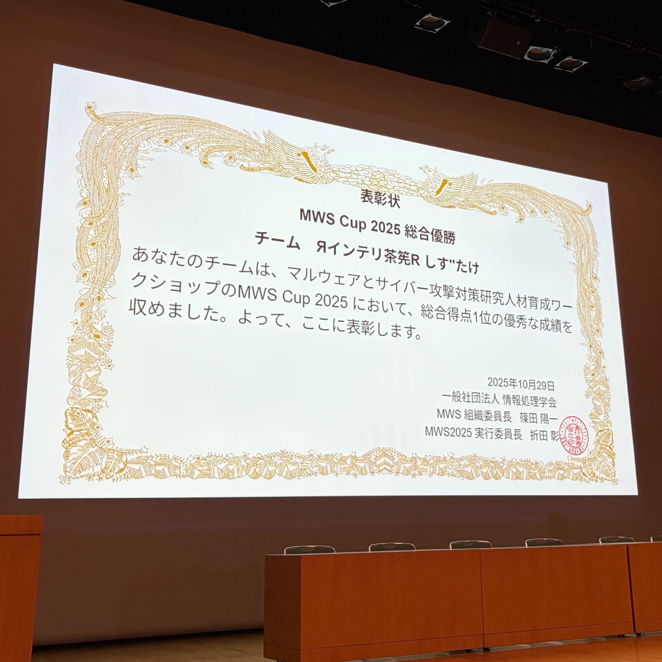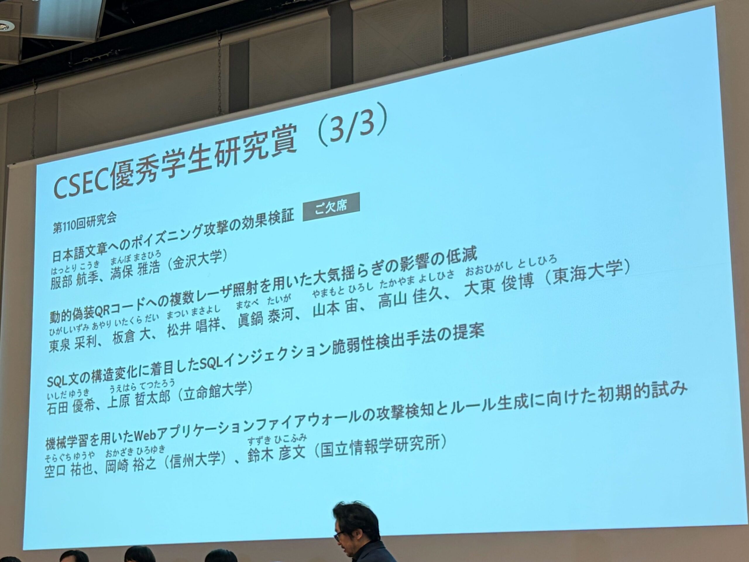 弊研からは,7月に開催されたSSS2025で石田君が発表した論文が,CSEC優秀学生研究賞として選ばれ,表彰されました.