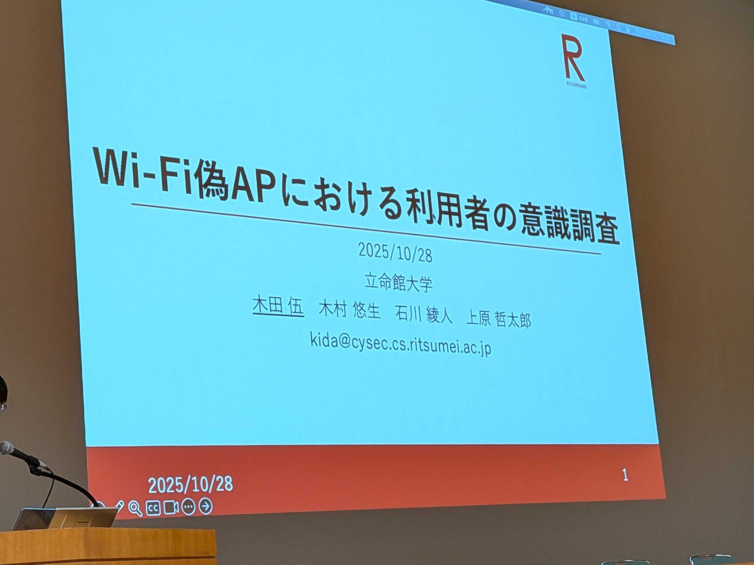 また,隣の研究室の穐山研が共著に入っている高校生の発表があり,聴講しました.この論文はCSS2025優秀論文賞に選ばれており(CSS2025学生論文賞ではなく!),凄いなぁと感じつつ,自分も負けてはいられないと決意を新たにしました.