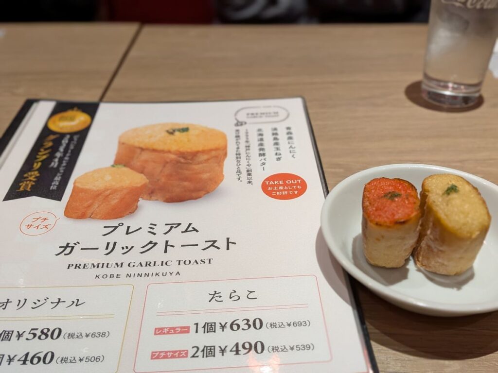 今回注文したのはガーリックトーストとラザニア