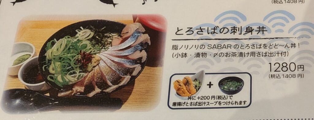 普通の焼きサバ定食から丼に刺身....